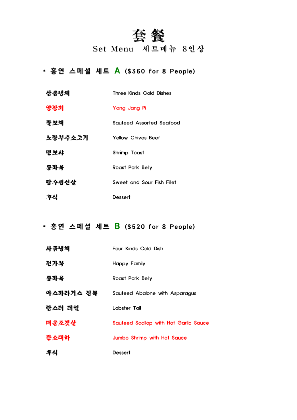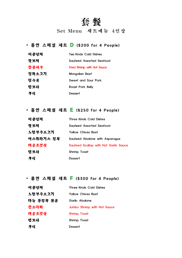 Hong Yeon Menu